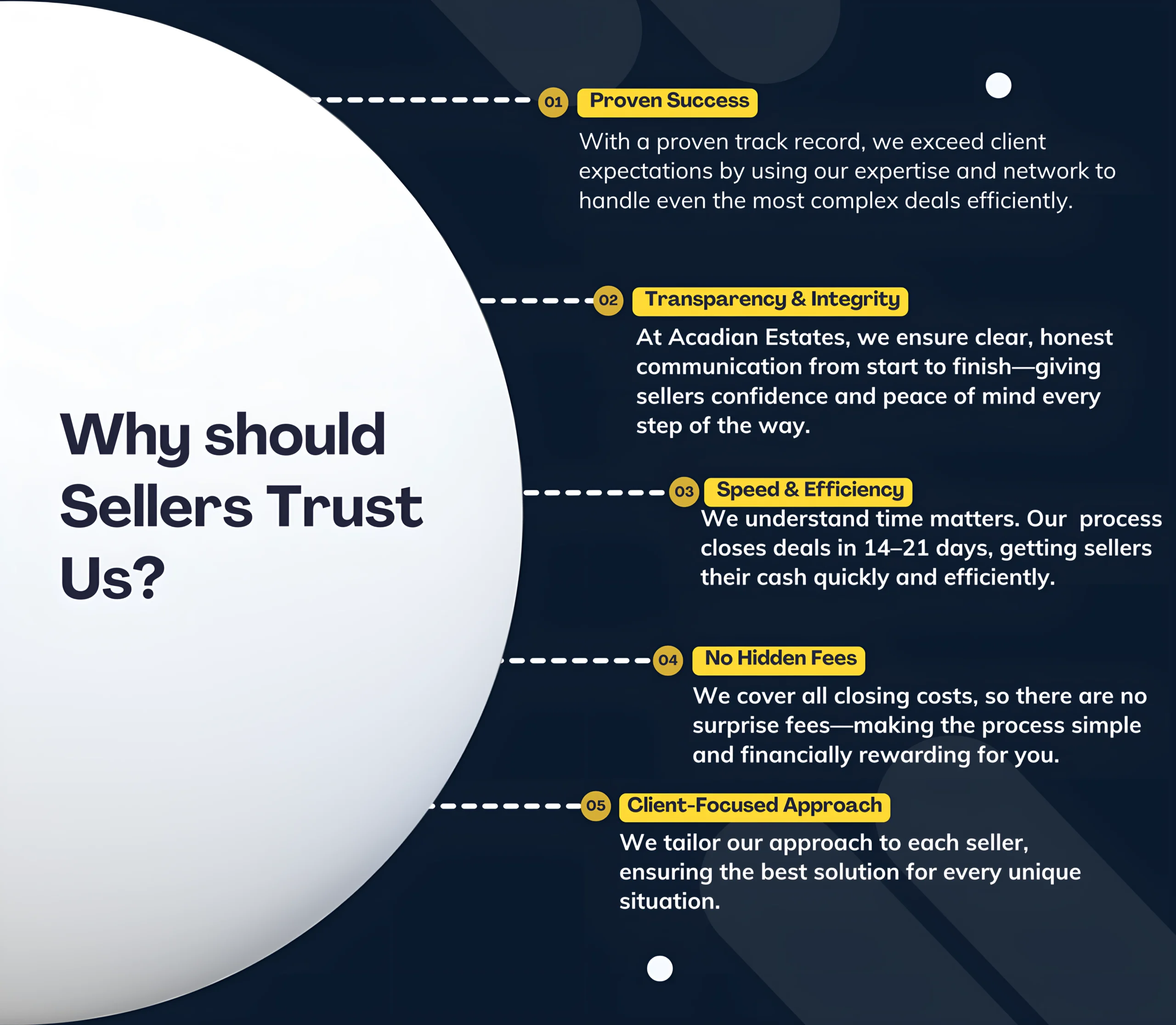 When you working with Acadian Estates, you can trust that you’re working with a reliable, experienced company committed to your best interests. We’re dedicated to delivering a seamless, hassle-free experience from start to finish.